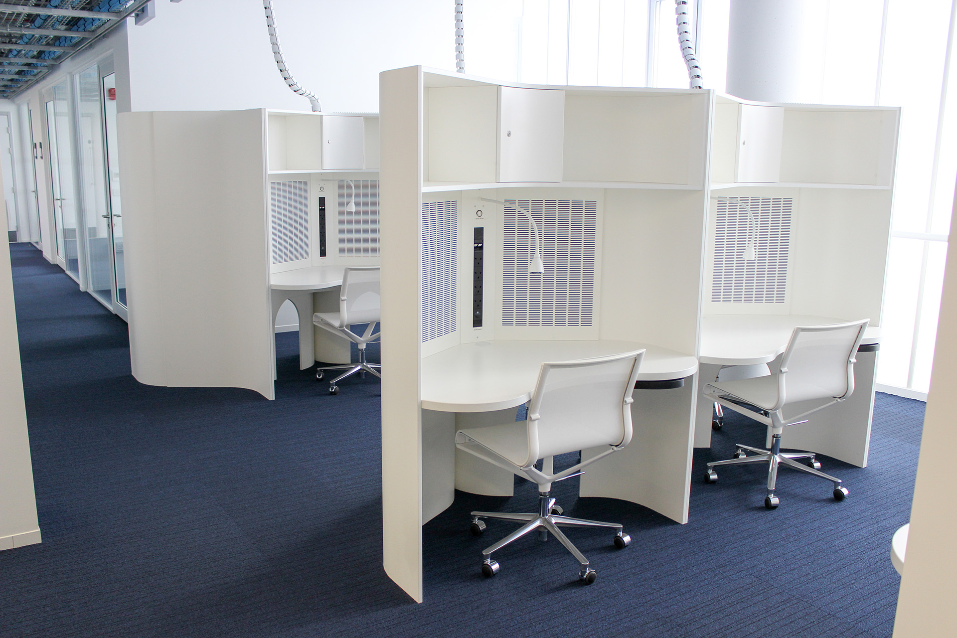 For the centre we designed a range of specialist furniture that will allow both group and independent study. Amongst them is our 120º workstation, a new vision of working furniture. In addition, meeting room furniture, dining areas, soft seating areas and reception furniture was all created following the palette and aesthetic leadership of the surrounding architecture.